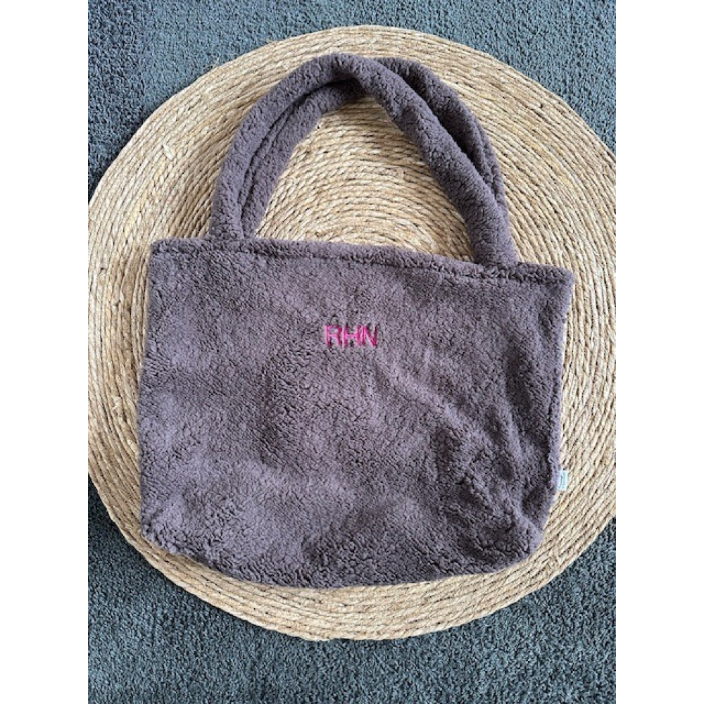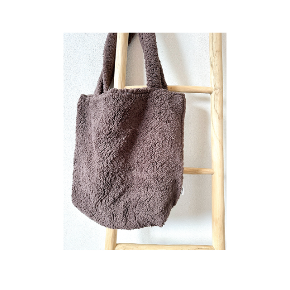 Deze mombag heeft aan de buitenkant een lekkere bruine teddy stof en aan de binnenkant een effe beige stof.