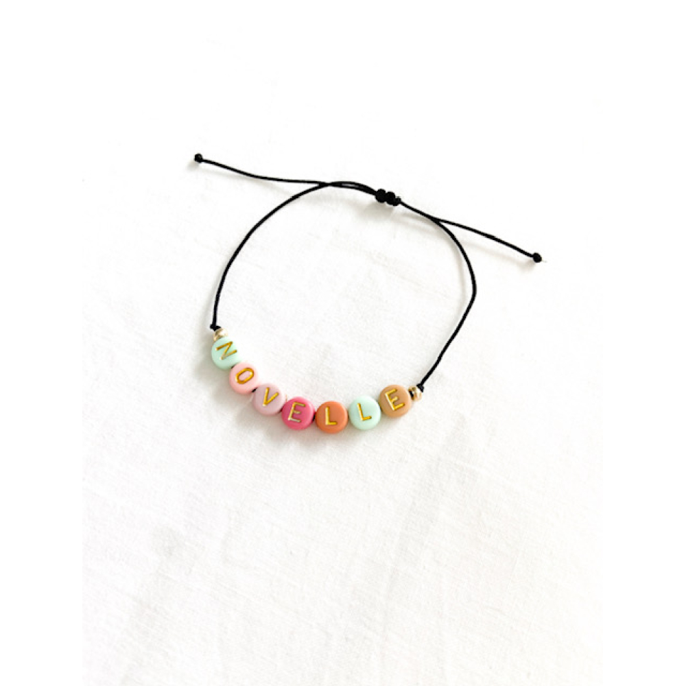 Gekleurde kralen met gouden letters. Kleuren wisselen per armbandje!