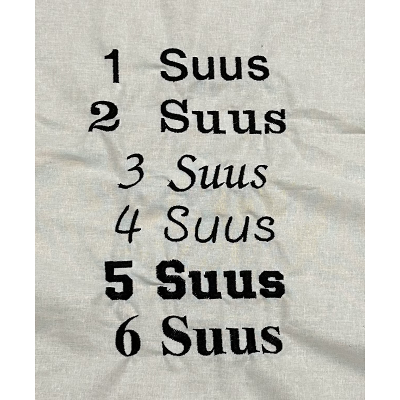 De naam wordt standaard in het linkeroor geborduurd. Aan de andere kant zou ook de geboorte datum kunnen, dit kost €2,95 extra.